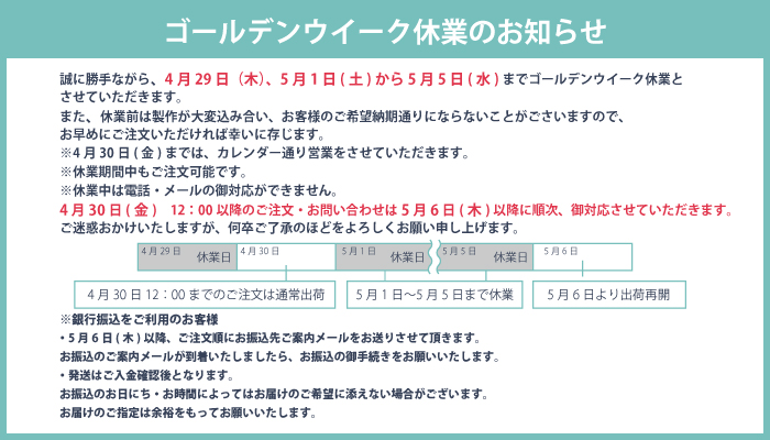 ゴールデンウイーク休業のお知らせ