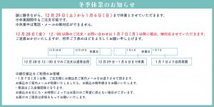 冬季休業のお知らせ/12月28日(土)~1月6日(月)