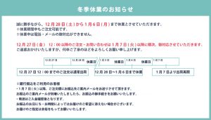 冬季休業のお知らせ/12月28日(土)~1月6日(月)