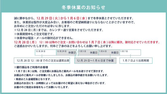冬季休業のお知らせ